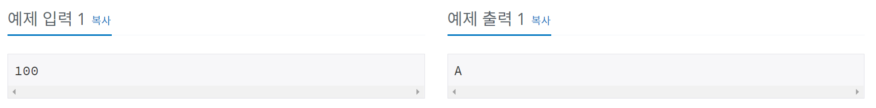 첫째 줄에 시험 점수가 주어진다. 시험 점수는 0보다 크거나 같고, 100보다 작거나 같은 정수이다.