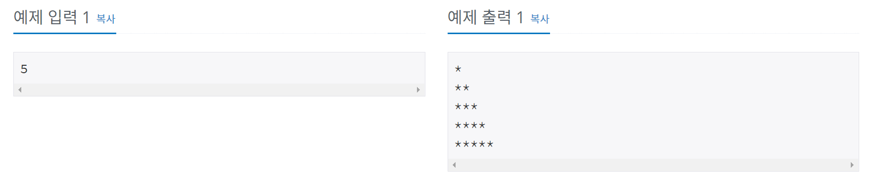 첫째 줄에는 별 1개, 둘째 줄에는 별 2개, N번째 줄에는 별 N개를 찍는 문제